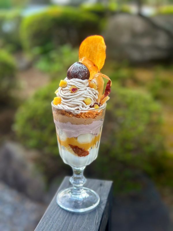 大人気のモンブランがさつま芋とコンビになって和のテイストパフェに仕上がりました♥