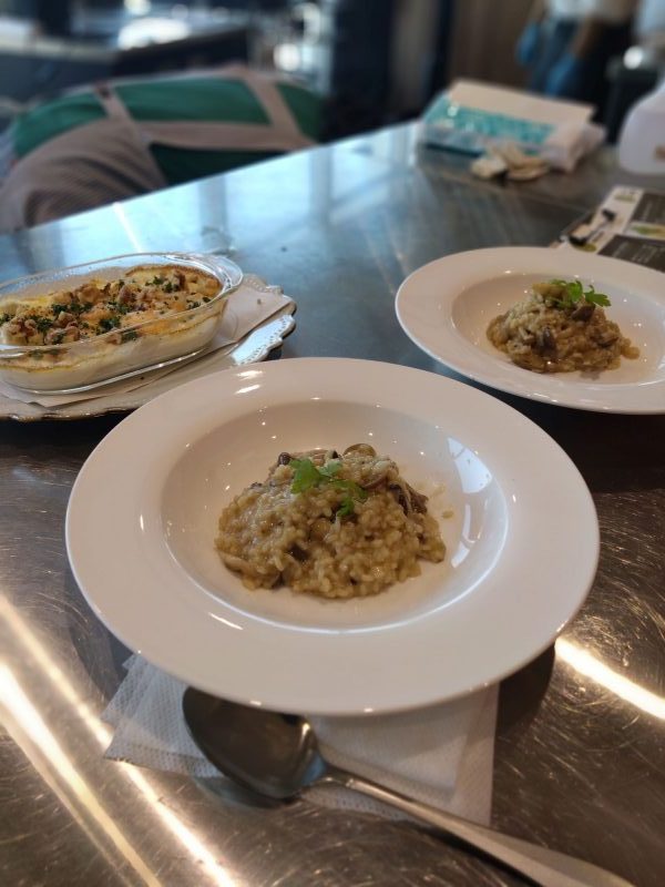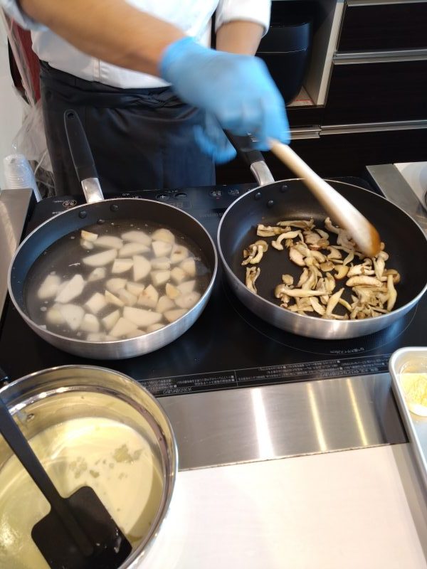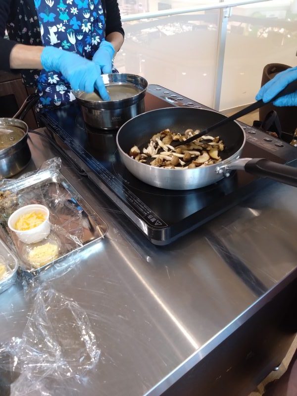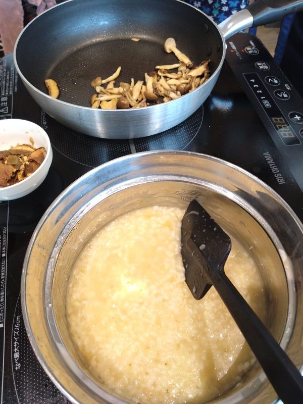 本日のメニューは「きのことポルチーニのリゾット」「里芋のゴルゴンゾーラとミックスチーズグラタン」の2品。お米から作るリゾットに興味津々です🥰