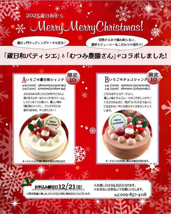ただ今蔵日和ではクリスマスケーキのご予約受付中です😊
